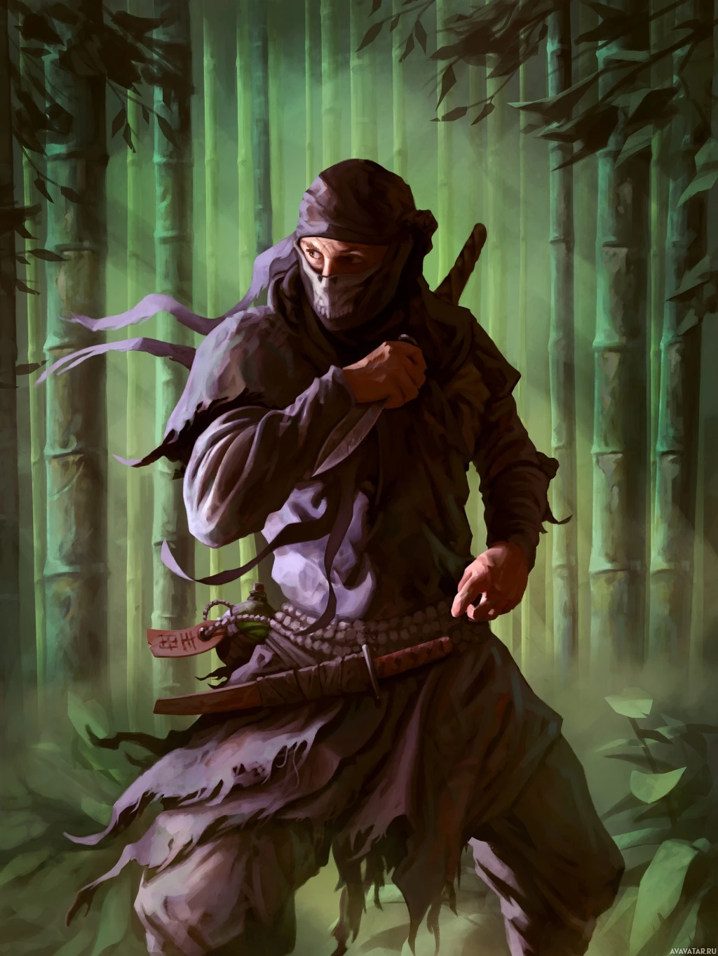 The image shows a character dressed in traditional ninja attire, which includes