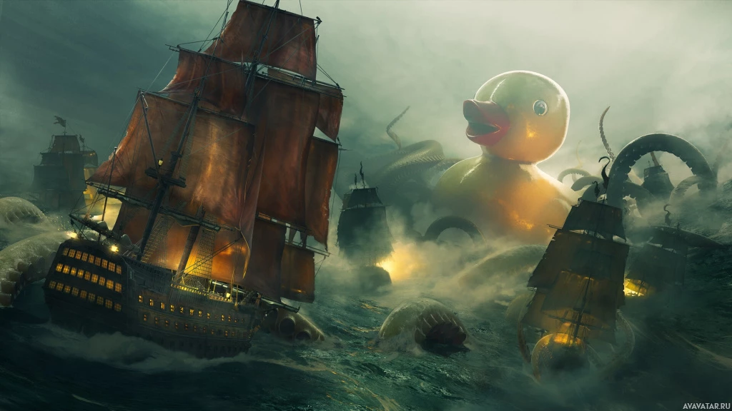 several ships with sailors aboard, all depicted in an artistic and somewhat dramatic fashion. The background suggests a stormy sea under