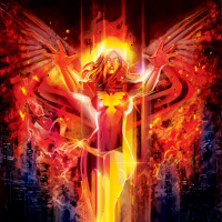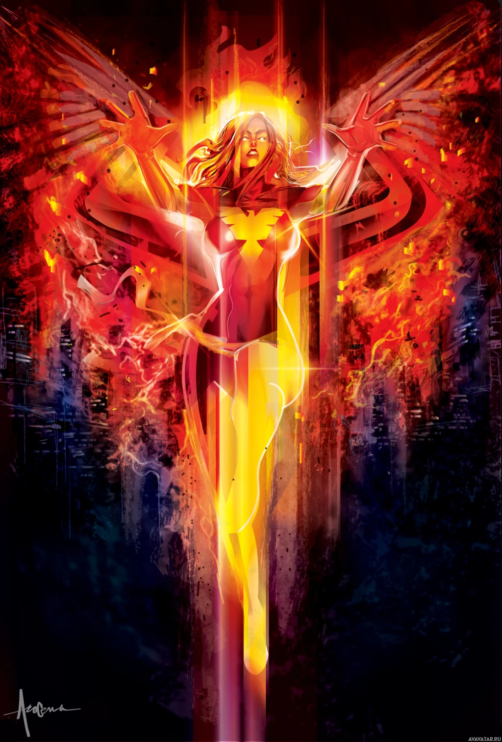 telekinetic powers, particularly the ability to create walls of fire. The background has a fiery and chaotic feel to it, emphasizing