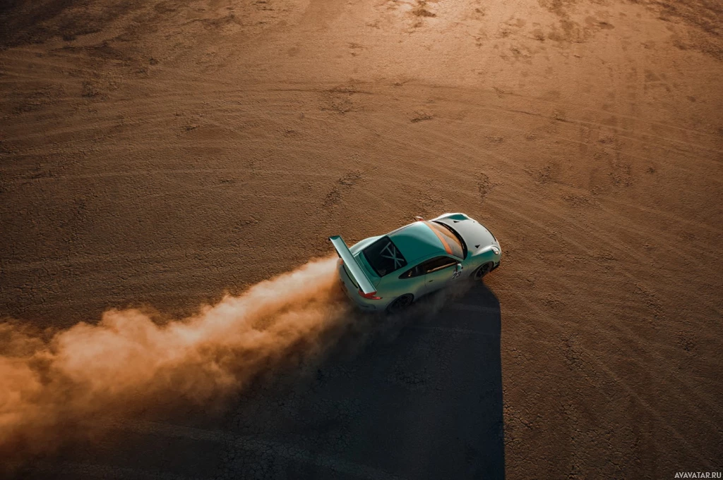 setting sun in the background gives the scene a warm glow, which suggests that the photo might have been taken during the evening. This image could be associated with concepts such as racing, automotive culture, or high-