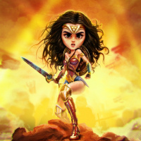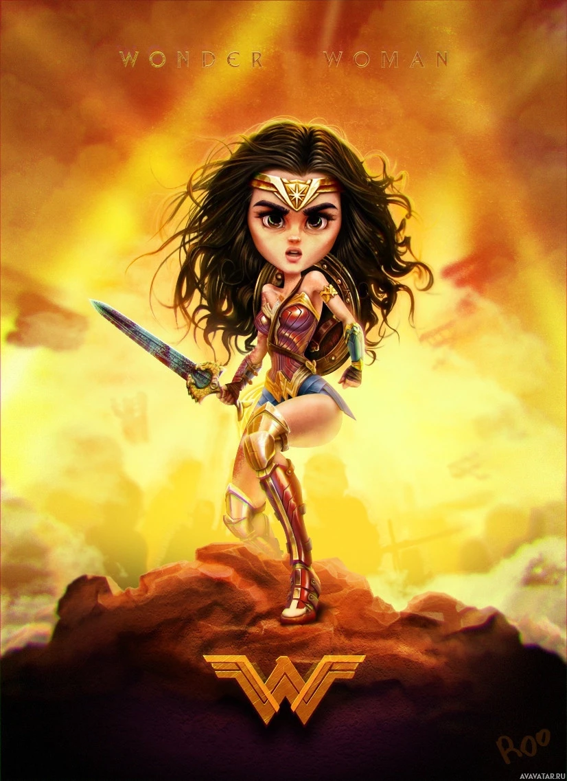 iconic costume, which includes a golden tiara, bracelets, shorts with the "W" logo, and boots. She also has