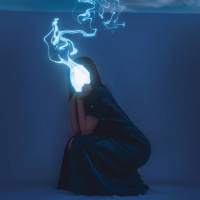 a dark outfit which blends into the background, emphasizing the smoke effect.