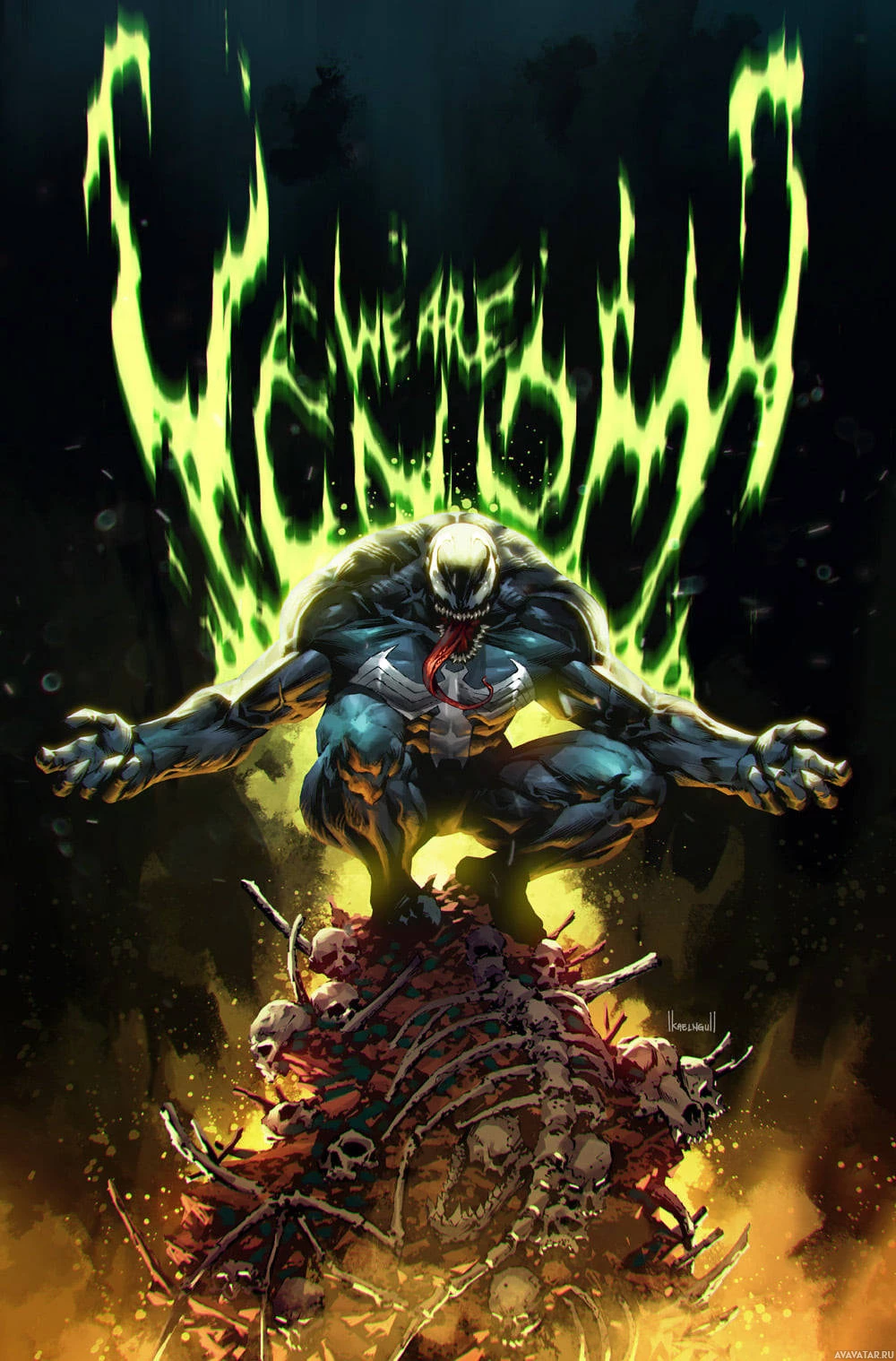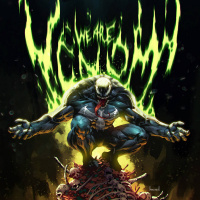 a greenish hue. The text "WE ARE VENOM" is prominently displayed at the top, suggesting thematic content related to the symbiotic superhero known as Venom from