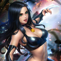 The image depicts a character that resembles X-23, also known as Laura Kinney from the Marvel