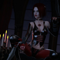a female character named Bloodrayne, from the video game series of the same name. She is shown in