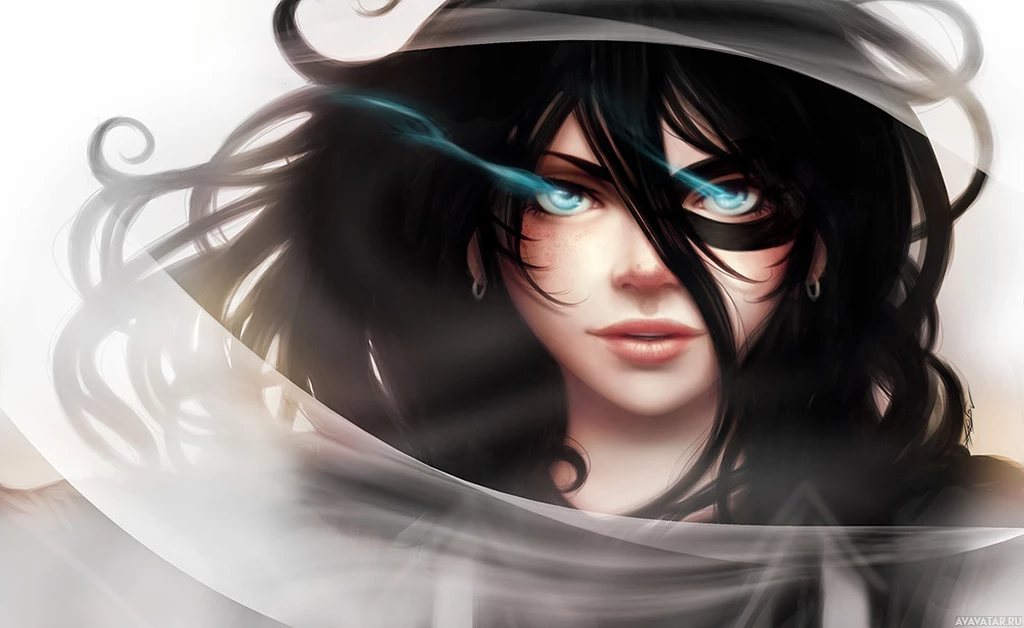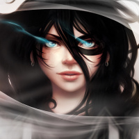 a female character with brunette hair. The character appears to be in a stylized, fantasy-like setting. Her expression is somewhat intense or determined, and she has