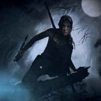 The image depicts a character who appears to be Lara Croft, the protagonist of the "Tomb Raider"
