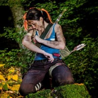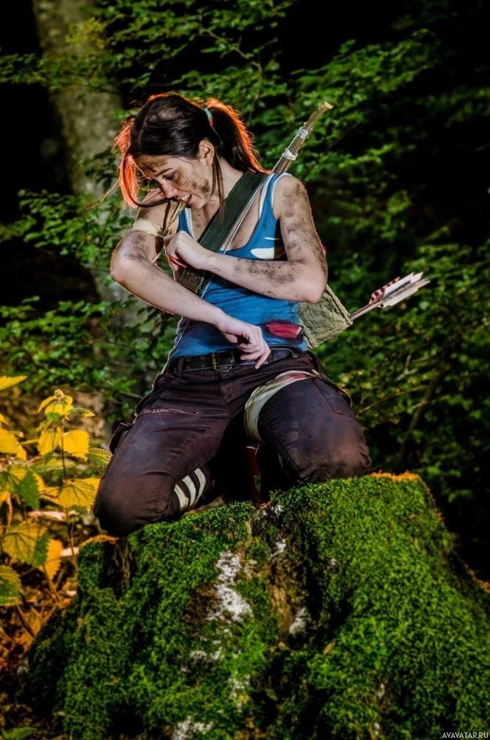 wilderness setting, often associated with adventure-themed games like those featuring Lara Croft. It's important to note that cosplay is a popular activity where people dress up as characters from various media, such as