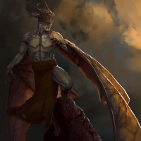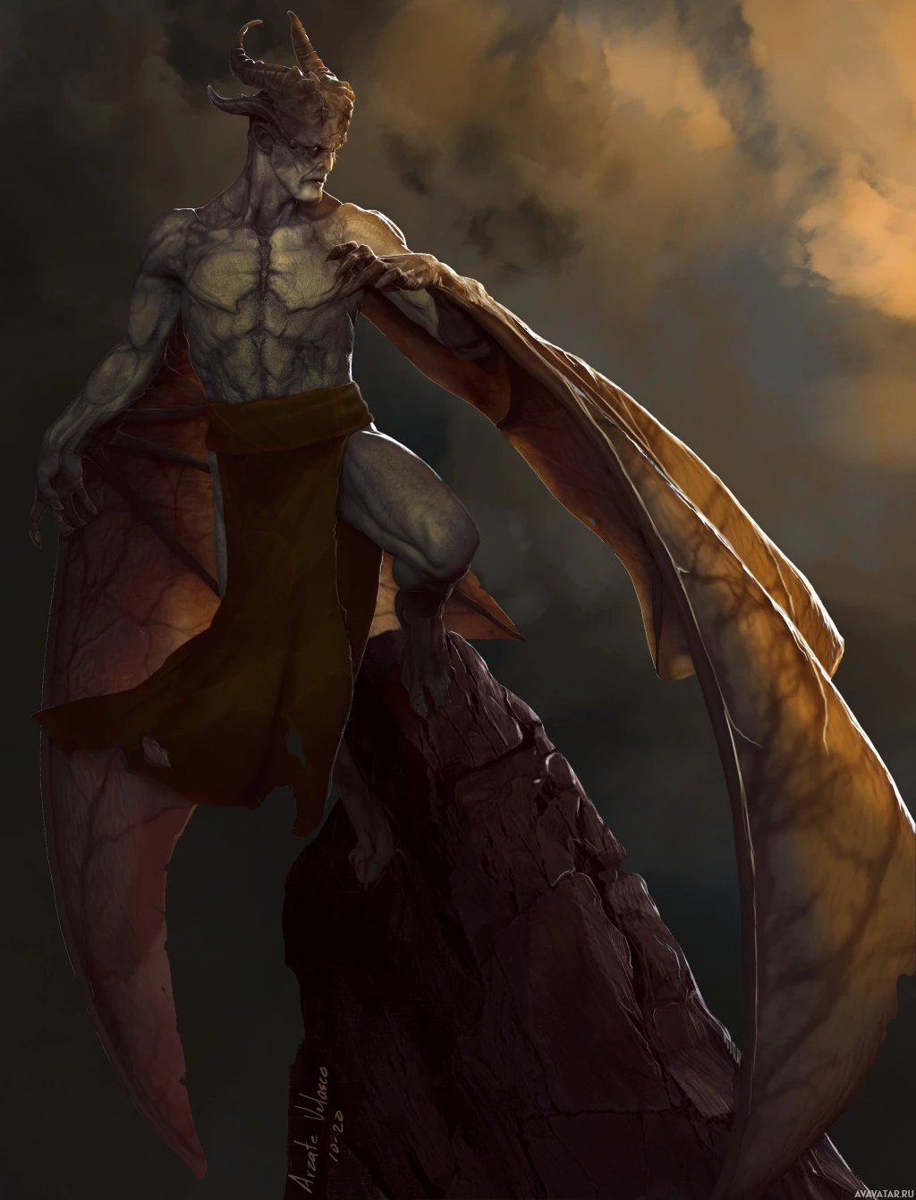 The image depicts a fantasy-themed illustration of a gargoyle. It appears to be a creature with human features, such as arms and a torso, but the face is that of