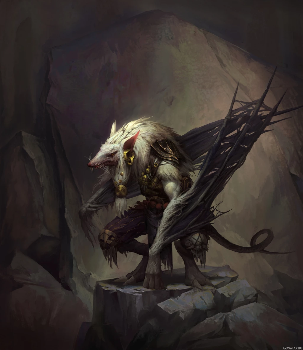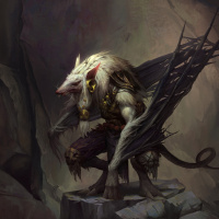 fantasy folklore, is shown with fur on its shoulders and arms and a snout. It has long claws and is wearing some