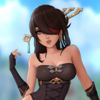 fish scales, giving the impression of an aquatic theme. The character is depicted in a pose that suggests confidence and poise.