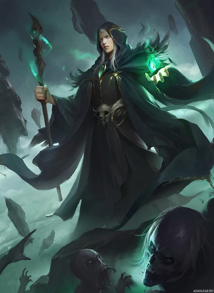 a video game or an animated series. This character appears to be a wizard or sorcerer, with