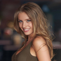 an indoor setting, possibly a cafe or a similar establishment with a casual ambiance, given the presence of what looks like a counter or bar area in the background. She has