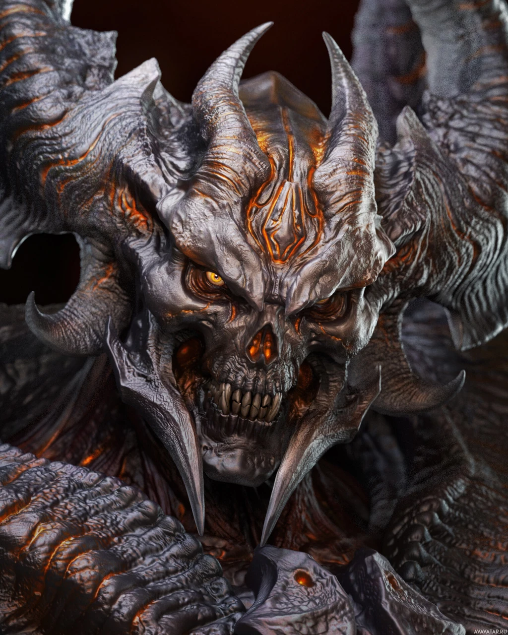 the video game "Diablo". This character is known for its demonic appearance, featuring horns, a skull-like face with