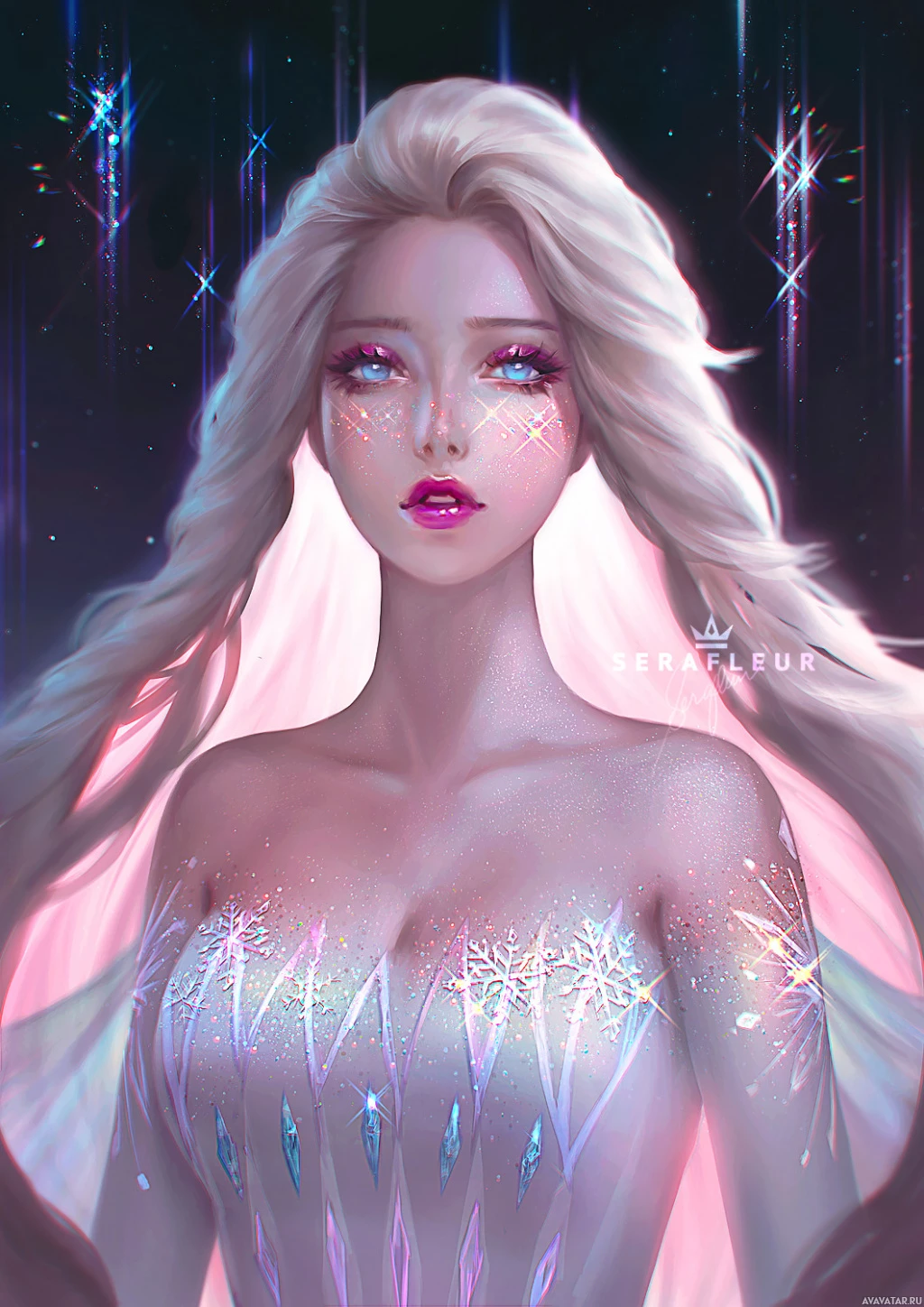 a female character with blonde hair. She has an ethereal, fantastical appearance with