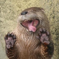 young dog due to its size and appearance. Otters are known for their playful behavior and they can exhibit a variety of facial expressions and