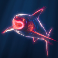 lighting conditions or digital manipulation. The shark appears to be swimming underwater with the darker