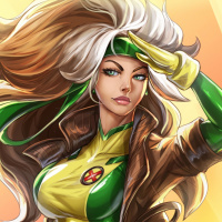 an illustrated character that is recognizable as Rogue from the X-Men comics and movies. She is depicted in her
