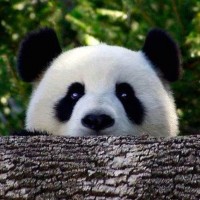 In the image, there is a panda peeking out from behind what appears to be
