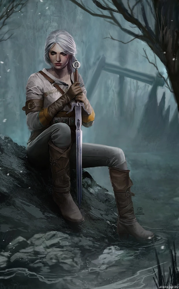 The image features a character known as Ciri from