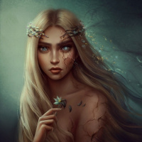 a female character with blonde hair. She has an ethereal or fantasy-like appearance, as indicated by the presence of what appears to be a wing on her back and possibly other facial features that suggest she is not entirely human. The art style suggests it could be from a graphic novel,