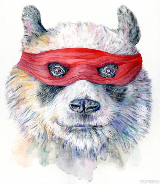 На картинке изображен медведь с человеческими глазами и маска, напоминающая персонажа Человека-паука, в частности красный и синий костюм, который носил Питер Паркер.