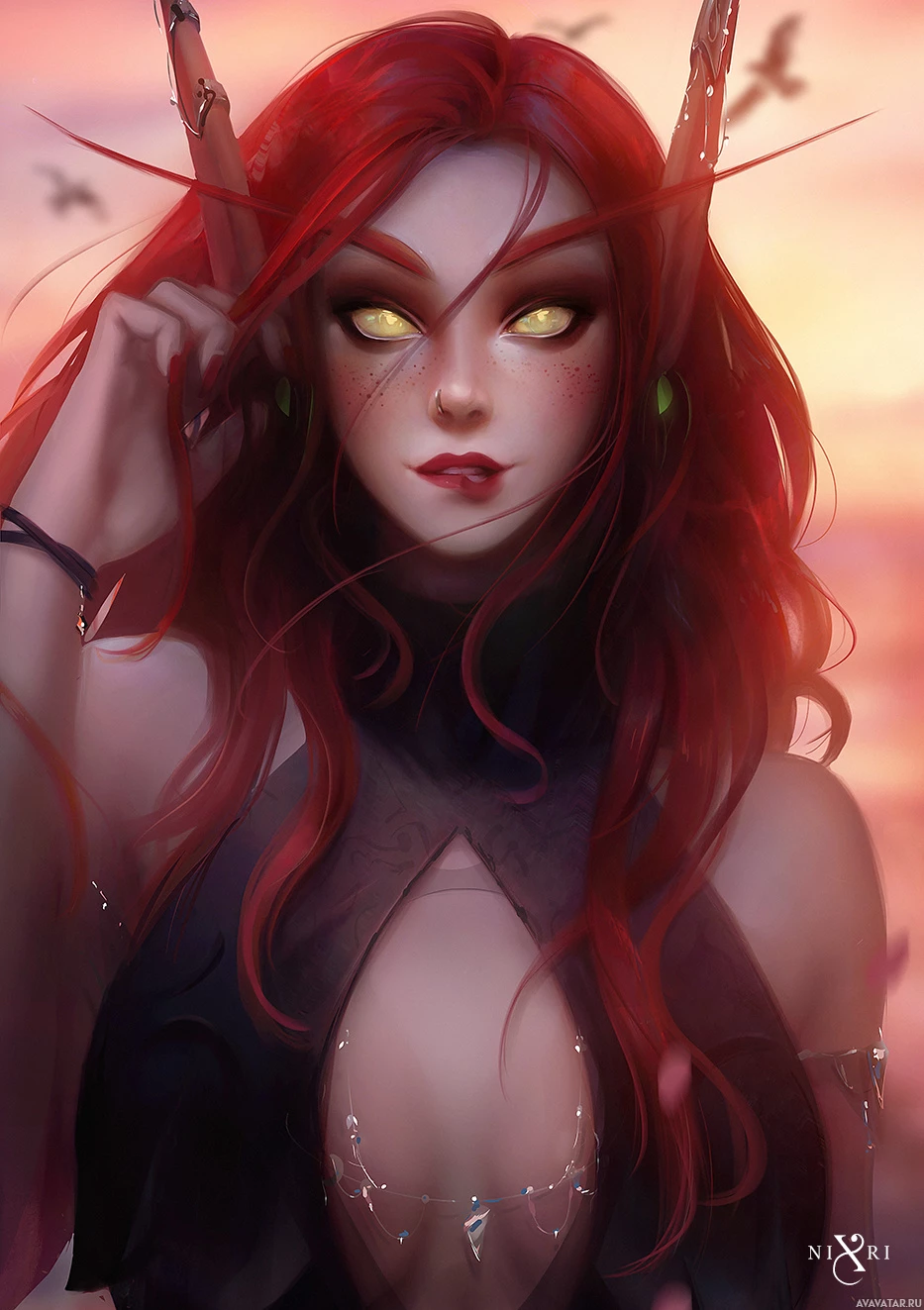 red hair and pointed ears, characteristic of fantasy elves. This style is commonly associated with the Warcraft