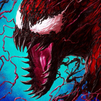 The image depicts a character that appears to be Carnage, a fictional supervillain appearing in American