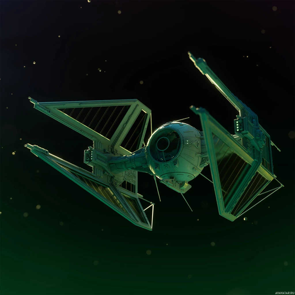 На картинке изображен перехватчик TIE из франшизы "Звездные войны". Этот космический корабль известен тем, что используется имперскими силами и часто ассоциируется с флотом Галактической империи.