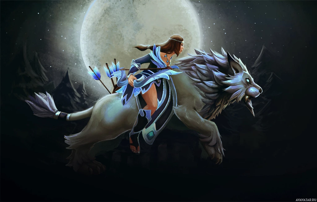 a full moon, which is consistent with Mirana's abilities in Dota 2 that often involve flight and nocturnal environments.