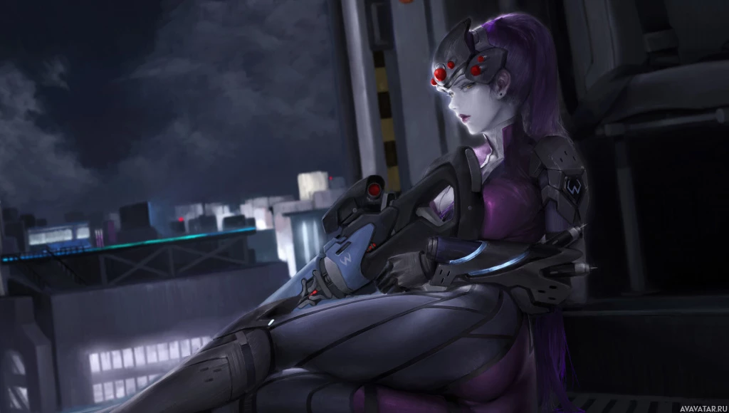The image features an animated character who appears to be Widowmaker from