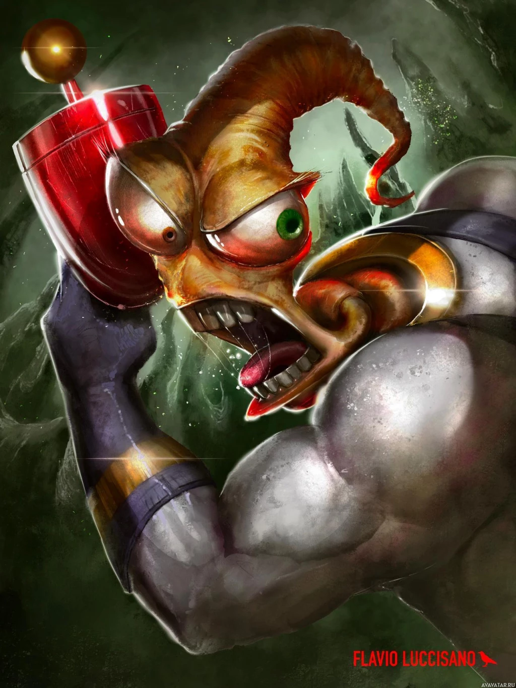 The image features an animated character that appears to be Earthworm Jim, a well-known