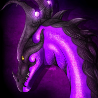 The picture features a fantasy-style dragon. It has purple scales with darker details, such as horns and a spiky mane. The dragon is depicted in a stylized manner, commonly associated with fantasy art.