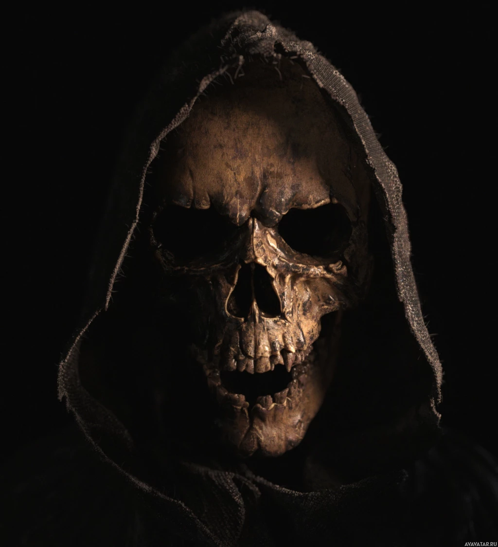 the Grim Reaper or Death itself, symbolized by the skull which is prominently displayed. The overall tone of the image is ominous and foreboding, often associated with themes of mortality or the supernatural.