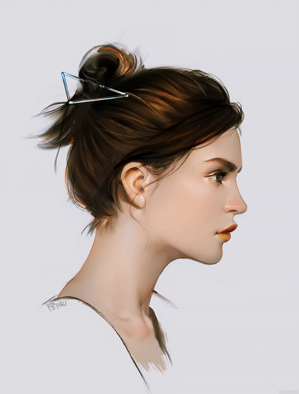 a neutral expression on her face and is looking slightly away from the viewer. The art style suggests it could be