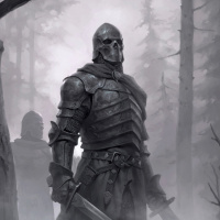 bare trees that suggest a forest or battlefield setting. The overall atmosphere of the image conveys