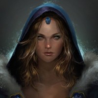 the video game "Dota 2," specifically Crystal Maiden. She is depicted with