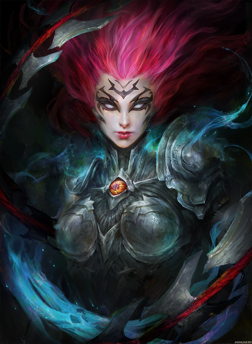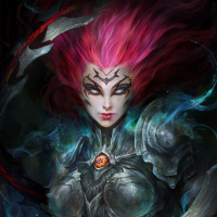 The image features a character with pink hair and a fantasy theme. The character is wearing armor, suggesting they might be a warrior or a character from a fantasy setting. The design elements such as the color scheme and the overall style give it a distinctive look that fits within the fantasy genre.
