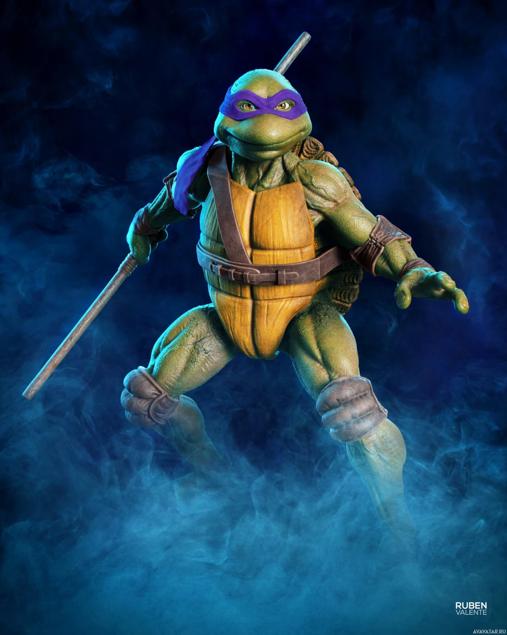 Mutant Ninja Turtles franchise, specifically Donatello. He is depicted with his iconic