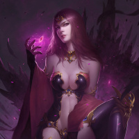 the glowing orb she holds in her hand. Her pose suggests a confident and powerful demeanor, fitting for a character often found in