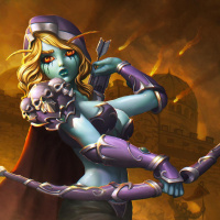 an animated character who appears to be Sylvanas Windrunner, a prominent figure from the game "World of Warcraft." She is shown in