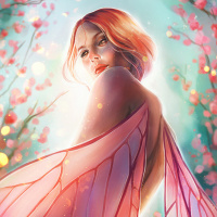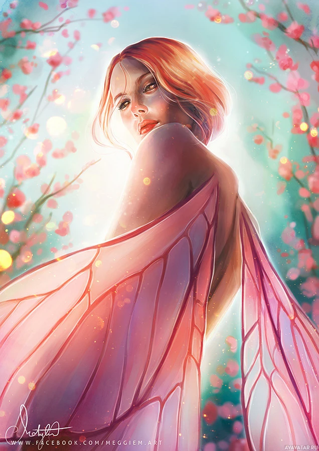 The image features an artistic depiction of a person with fairy-like wings, giving the impression that they are a fairy. The individual has