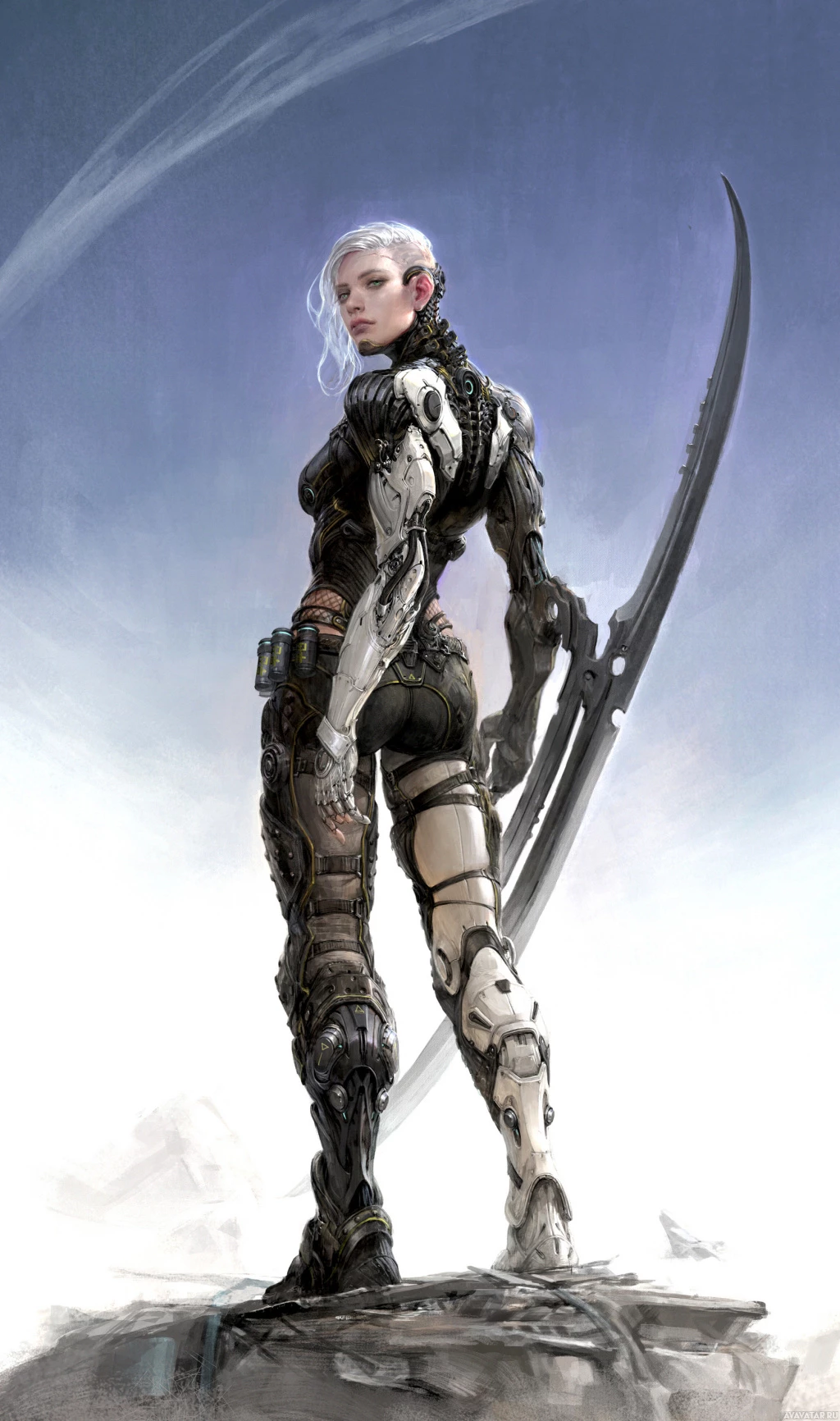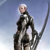 readiness for action or combat. The artwork is detailed and visually striking, showcasing the character's design and the environment they inhabit.