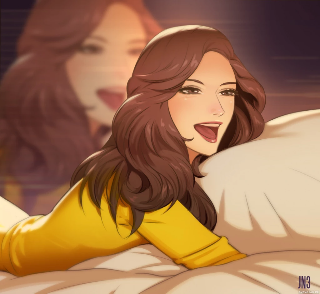 a blurred background that seems to indicate a night setting with lights, possibly from a television screen or other illuminated source. The image has been watermarked with the text "JN3."