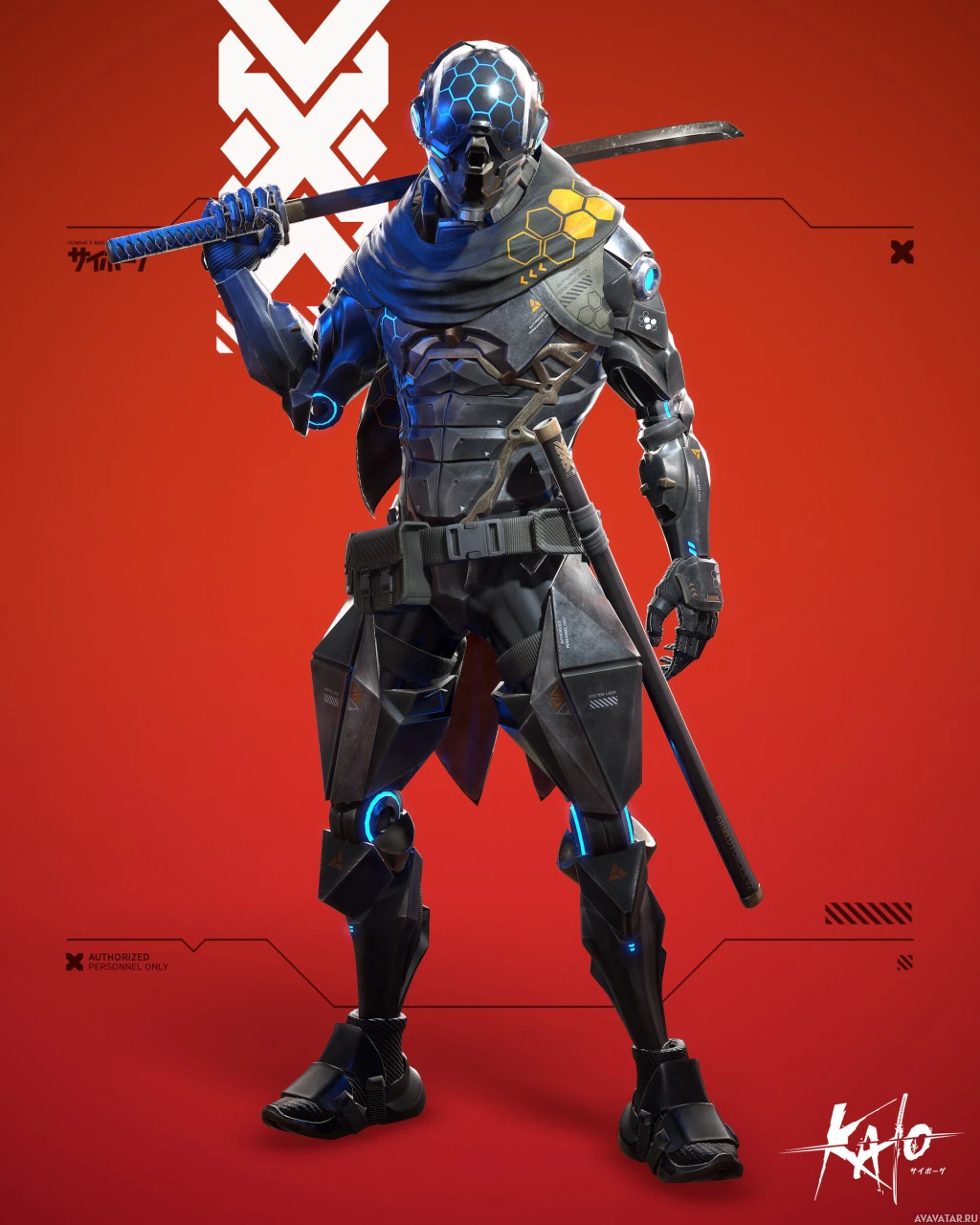a blend of traditional and futuristic elements within the game's narrative. The robotic design of the character, along with the futuristic armor and the cyberpunk aesthetic, hints at