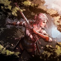 the video game "The Witcher 3: Wild Hunt." This character is known as Ciri, portrayed here in a dynamic