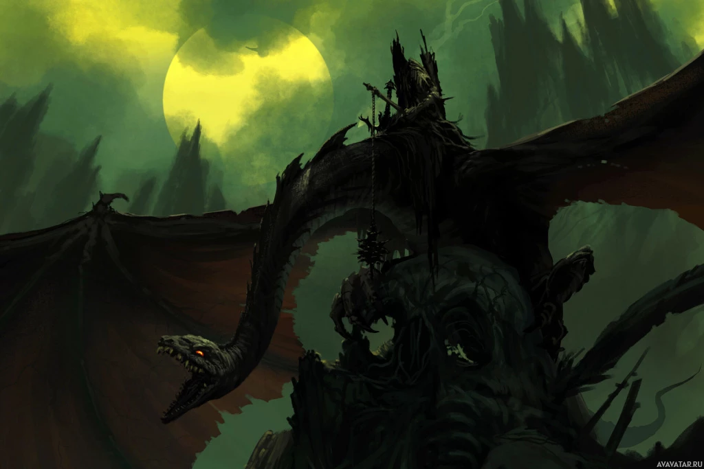 eerie atmosphere. The setting seems to be a battlefield or