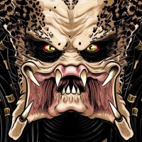 The image shows a stylized and exaggerated representation of the Predator character, which is from the "Alien" film series. It's not an actual person but a digital artwork or illustration designed to represent the creature in a creative way.