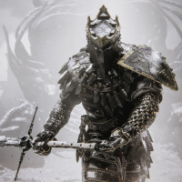 heavy armor and wielding a sword, which are typical attributes for a warrior archetype in such contexts. The environment appears to be