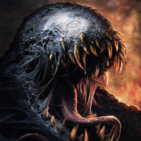 The image shows a character that resembles Venom from comic books and media. It depicts the character with an exaggerated expression, showing sharp teeth, and is set against a fiery backdrop which gives it an intense, dark atmosphere.